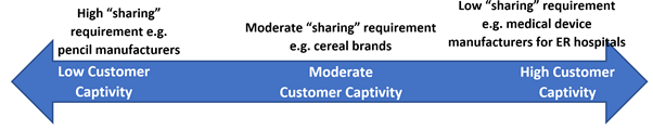 - Situations where the customer captivity is at the far right of the above spectrum.