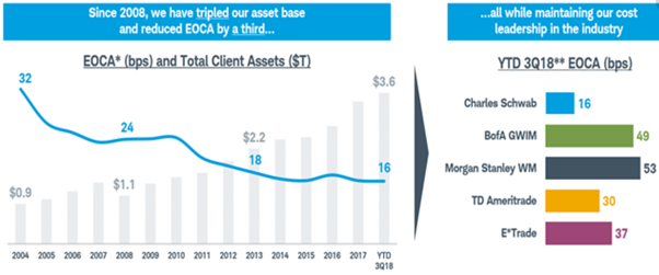 EOCA stands for ‘expenses on client assets’ and is a measure of exactly that. The lower your EOCA, the lower your cost structure and the cheaper you can offer your services to customers.