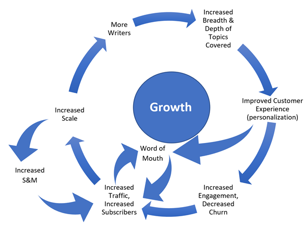 “Our user data tells us that each additional topic that someone engages with increases their likelihood of subscribing by 50%, and while politics is an important topic for our readers, around 80% go beyond politics to read other subjects each week.” – 2020 Q3 earnings call.