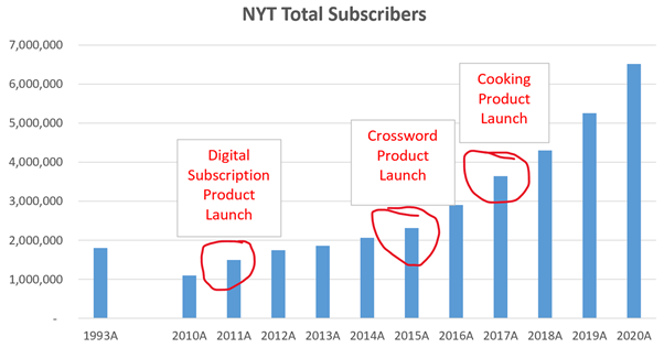 - Other niche topics such as gardening & true crime that the NYT can offer as standalone products & also bundle with the news product - similar to the Times’s Cooking product and its Crossword product