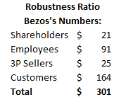 However, all-in-all I think Bezos was too conservative here with respect to returns for shareholders and for customers. I would contend he was a bit too generous with respect to employees, given that employees could conceivably work at other firms (albeit likely at lower wages).