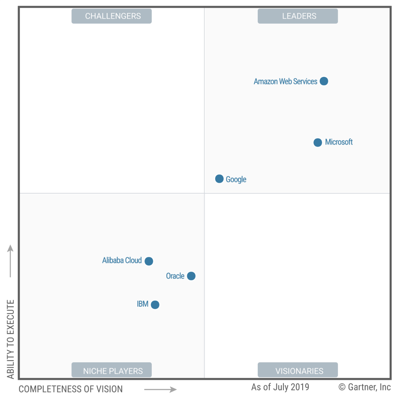 Gartner’s magic quadrant places for providers of Cloud Infrastructure as a Service is as follows: